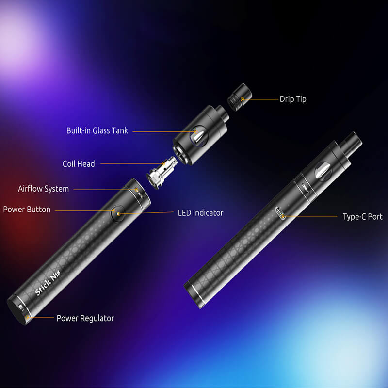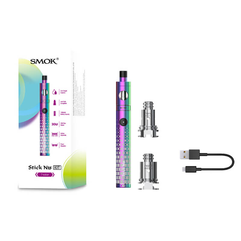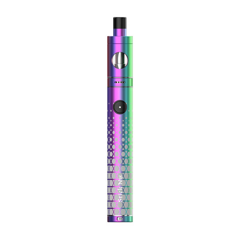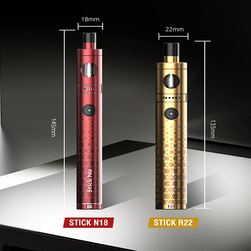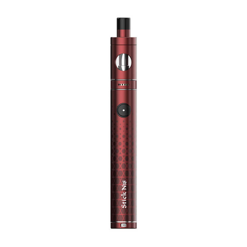 SMOKs Stick N18 Kit ist ein E-Zigarettenset im einfach verstaubaren Penstyle. Die Maße betragen 145mm x 18mm (88.3g) und die Farben Schwarz, Silber, Rot und 7-Color (Rainbow) stehen zur Verfügung. Es wurde sehr wertig aus Edelstahl, Glas und PCTG (Kunststoff) gefertigt, ist gradlinig und wurde mit einem modernen Muster verschönert.