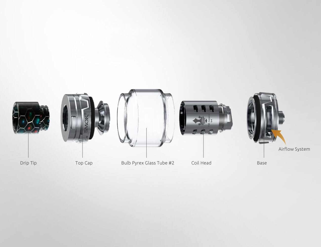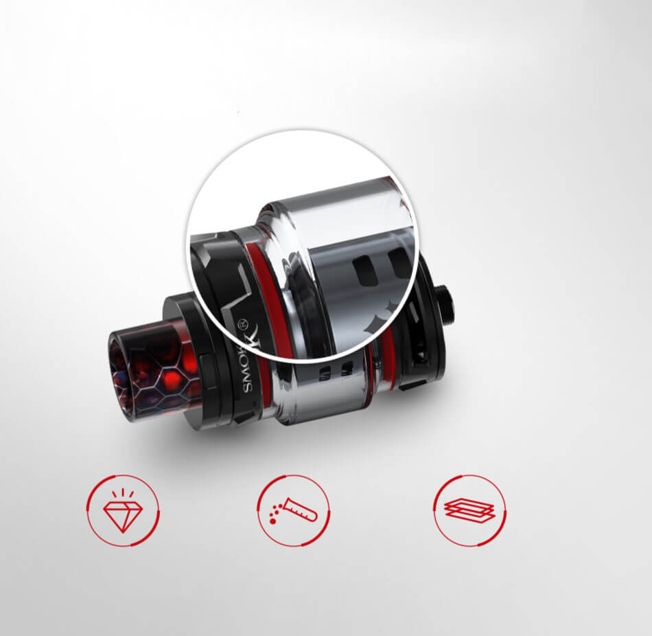 Der innovative, aus Edelstahl und Pyrexglas hochwertig gefertigte TFV12 Prince Tank von SMOK ist der beindruckende Nachfolger des TFV12 KING.