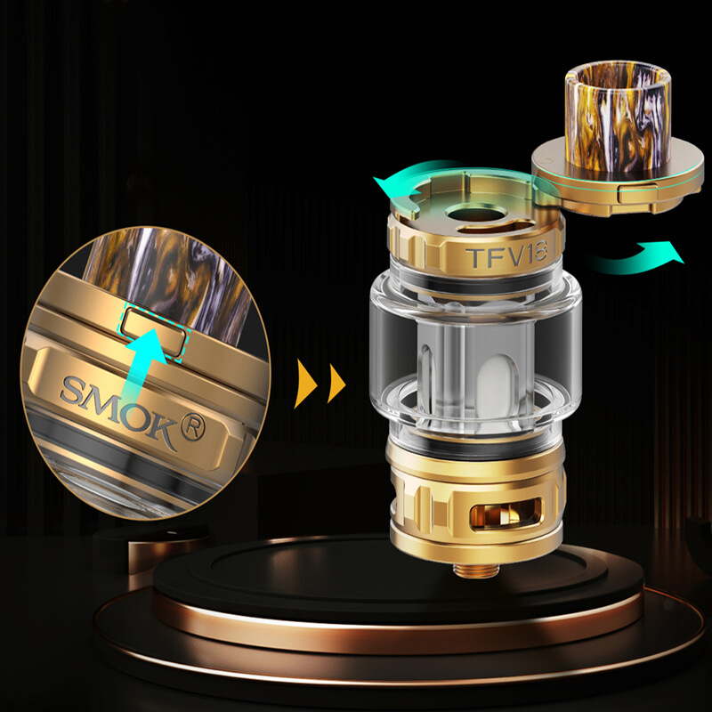 Um möglichst lange etwas von SMOKs TFV18 Tank zu haben, kann dieser auseinandergebaut werden, um eine hygienische Reinigung zu vereinfachen, wovon die Lebensdauer profitiert.