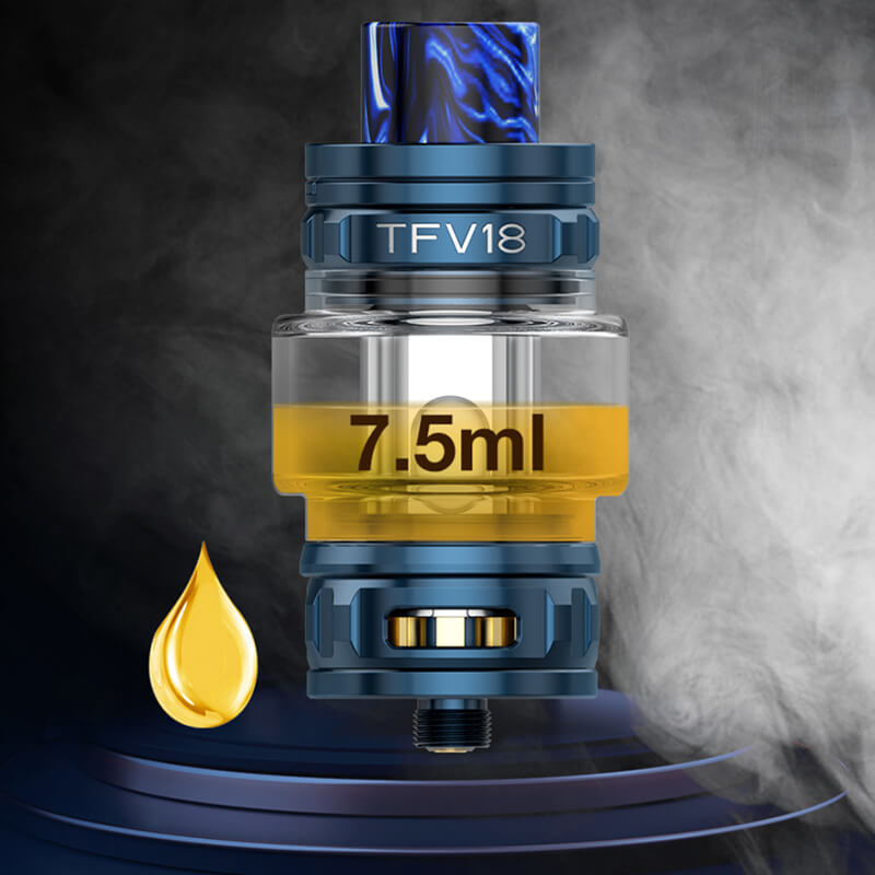 Der Verdampfer erhielt eigens entwickelte TFV18 Verdampferköpfe. Diese Coils haben einen Widerstand von 0.33 Ohm (80W-140W) und 0.15 Ohm (80W-140W) und richten sich vormals an alle Fans des direkten Lungenzugs. Mit der TFV18 RBA Einheit kommen auch alle Selbstwickler voll auf ihre Kosten. Wem das noch nicht reicht kann die kompatiblen TFV16 Coils ebenfalls nutzen.