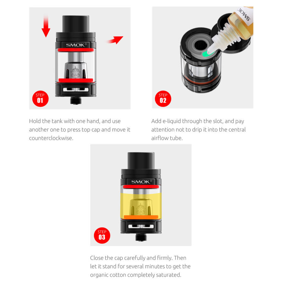 Der TFV8 BIG Baby Light Edition Tank bringt ein Tankvolumen von 5ml mit und wird von oben mit Liquid befüllt. Die stufenlos regulierbare Airflow wurde am Boden positioniert und sorgt für eine gelungene Luftstrom - Zirkulation. Der Verdampfer nutzt wie auch der normale TFV8 BIG Baby Tank das komplette Sortiment der der TFV8 Baby Verdampferköpfe.