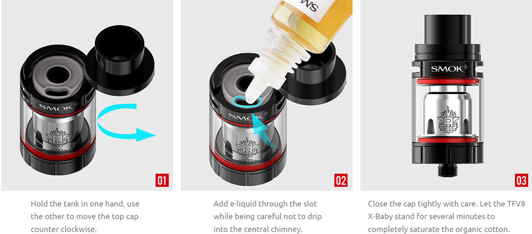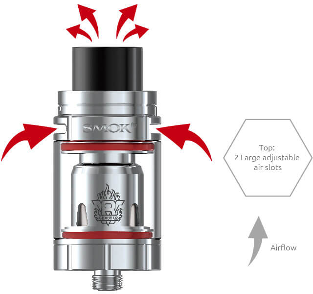 Der neueste Verdampfer der TFV8 Reihe ist der X-Baby Tank von SMOK. Er ist der erste seiner Art in der eine stufenlos einstellbare Top-Airflow eingebaut wurde. Das macht ihn nun absolut auslaufsicher trotz der zwei großen Airslots. Auf das bequeme Topfillsystem mit Scharnierverschluss wurde natürlich nicht verzichtet.
