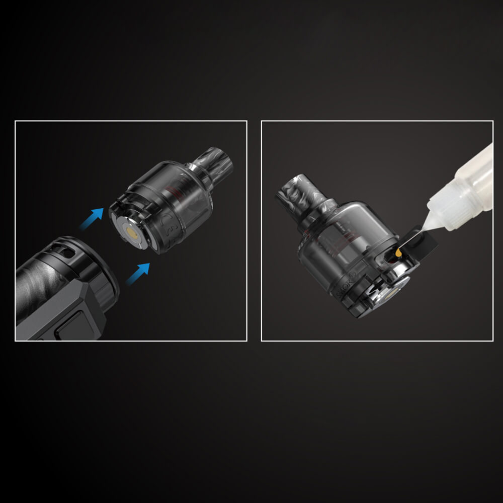 Der 5ml Thallo RPM 2 Pod wird magnetisch am Akkuträger befestigt. Das Betanken geht seitlich vonstatten und er kann sowohl mit den RPM Coils, als auch mit den RPM2 Verdampferköpfen genutzt werden, so ist für jedem etwas dabei. Das Thallo S Kit von SMOK ist wahrlich vielseitig, ein optischer Hingucker und rundum gelungen.