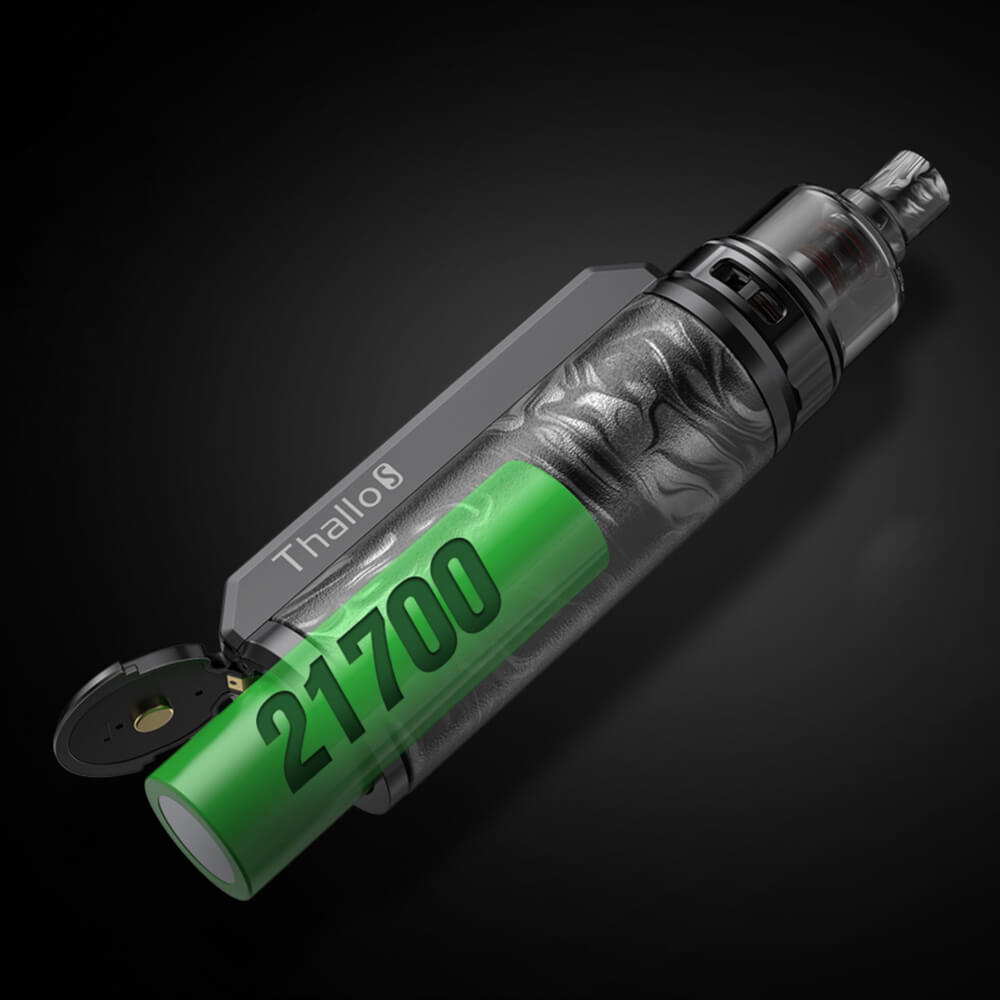 Für eine längere Akkukapazität wird das Gerät mit einer separat erhältlichen 21700 Zelle betrieben, die mühelos von unten in das Bateriefach eingesetzt wird und bei Bedarf mit dem 1.4A USB-C Ladekabel wieder vollständig geladen werden kann.