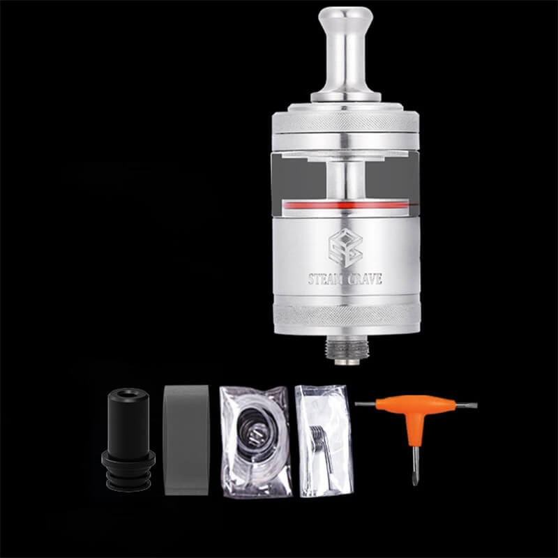 Steam Craves Aromamizer Classic MTL RTA wurde akkurat verarbeitet und besteht aus hochwertigen 304er Edelstahl und Pyrex, ist in Schwarz oder Silber erhältlich und besitzt die typische Namens-Prägung.