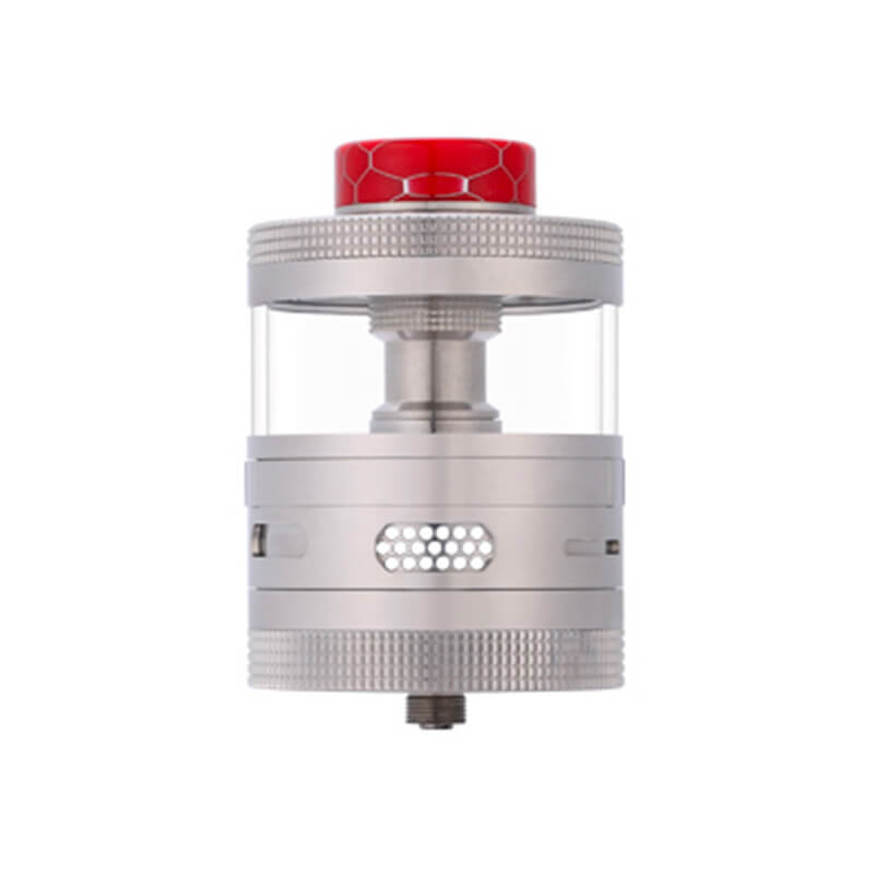 Wie gewohnt ist die Verarbeitung ordentlich und akkurat. Er ist in drei Farben (Schwarz / Silber / Gunmetal) erhältlich und schlicht und ohne große Schnörkel designt. Auffällige Verziehrungen wären ohnehin überflüssig, da der Verdampfer allein durch seinen kolossalen Durchmesser von 41mm optisch ein Hingucker ist.