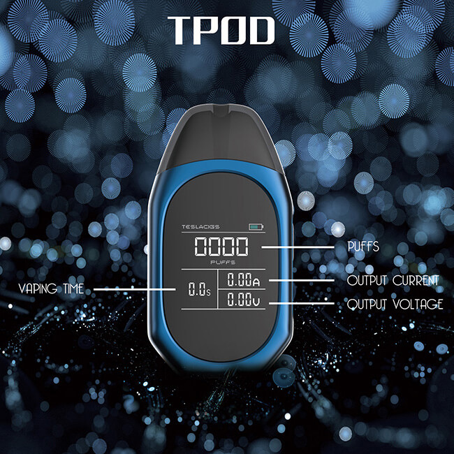 Als erstes aller Pod-Systeme besitzt der TPOD ein 1.4 Zoll Farb-Display, über das man alle relevanten Werte (z.B. Puff-Counter / Modi / Akkustand) einwandfrei und gut strukturiert ermitteln kann. Zudem ist der Bildschirm ein echter Hingucker, da er sich nicht wie gewohnt flach dem Mod anpasst, sondern etwas erhaben hervorkommt und ein wenig an die Form eines Juwels erinnert. Um den Betrieb aufnehmen zu können, wurde in dem TPOD ein 500mAh Akku verbaut, was für dieses kleine Kit vollkommen ausreicht. Über den gut zu erreichenden USB-Port wird in nur 1.5 Stunden die verbrauchte Kapazität rasch wieder geladen. Die Eingangsspannung beträgt 3.2V – 4.2V.