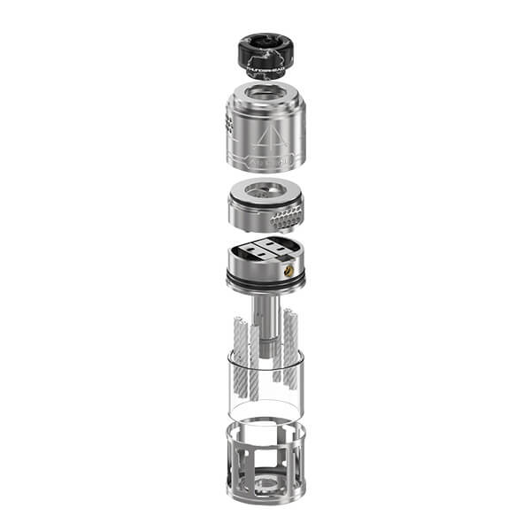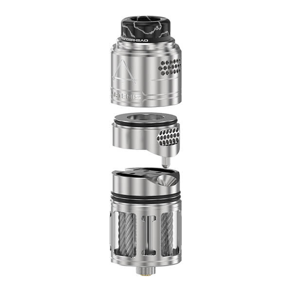 Der imposante Artemis 2 TC RDTA von ThunderHead Creations wurde hochwertig aus Edelstahl und Pyrex hergestellt und misst handliche 51mm x 25mm und wiegt 140g.