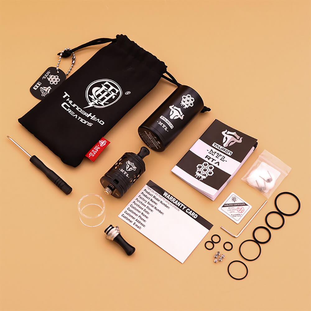 Der Tauren MTL RTA von ThunderHead Creations ist ein Selbstwickelverdampfer mit dem beste Geschmackserlebnisse und seichter Dampf möglich sind.