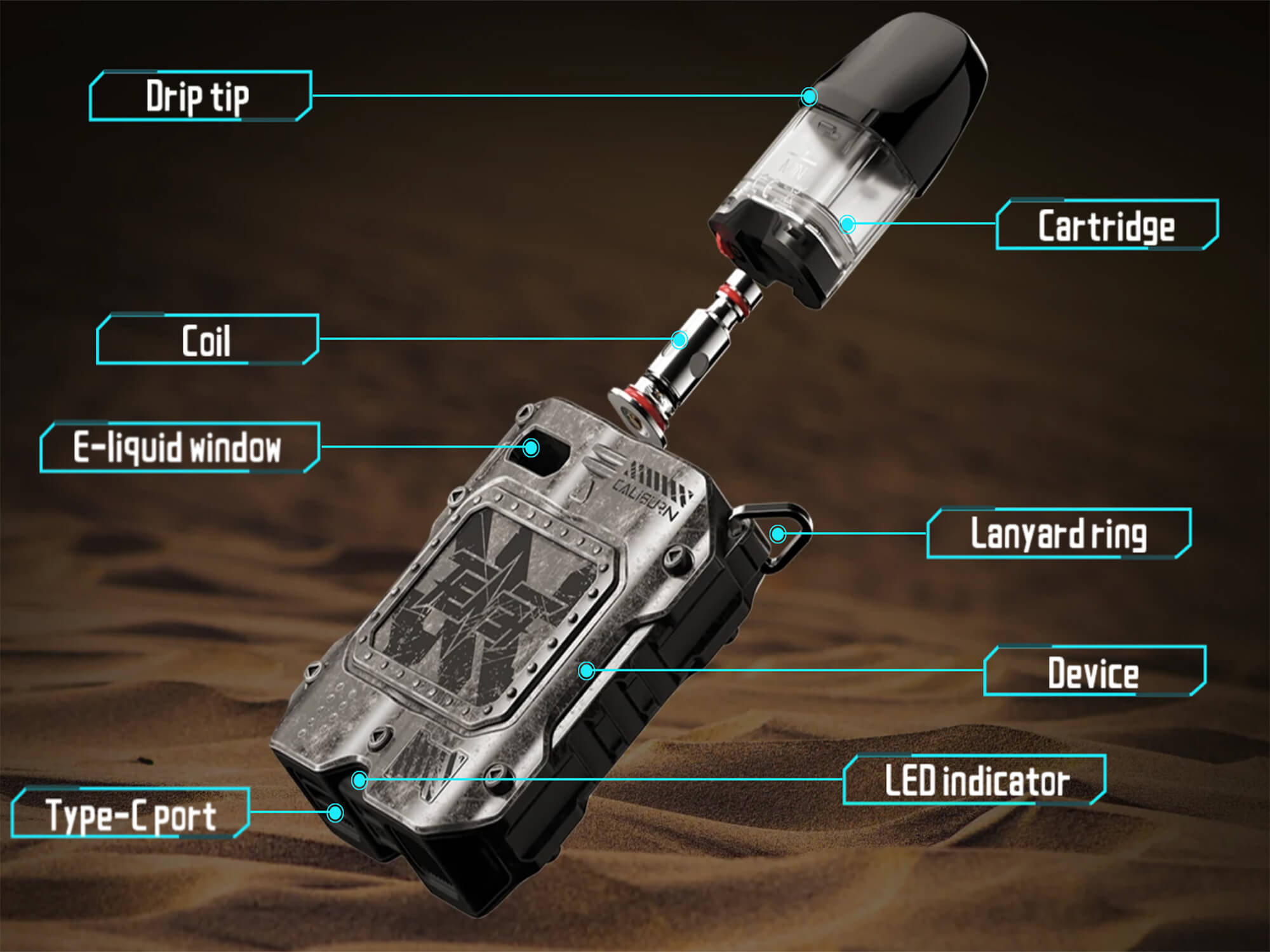 - Verdampferkopf: Kompatibel mit den Caliburn G Coils und den Caliburn G2 Coils