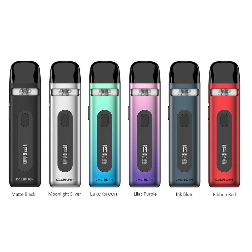 Uwell hat das Design bewusst schlicht und elegant gehalten und präsentiert sein aus sandgestrahlter Aluminiumlegierung bestehendes Caliburn X Kit in 6 verschiedenen, ansprechenden Farben. Der Winzling ist 107.4mm x 27.5mm x 15.6mm groß und wiegt lediglich 46g. Damit liegt er optimal in der Hand und lässt sich bestens verstauen.