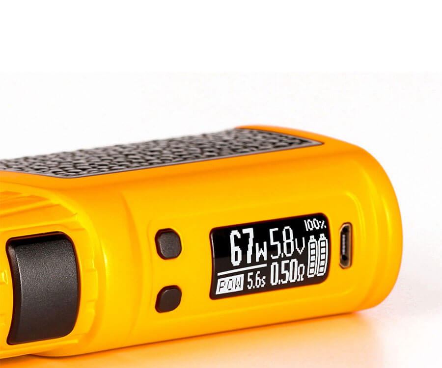Nach dem zusätzlichen Kauf zweier 18650er Batterien kann der Mod seinen Betrieb aufnehmen und Dank des verbauten Chip – Satzes eine maximale Ausgangsleistung bis zu 200 Watt erreichen. Gearbeitet wird im VW / TC / und Bypassmodus. Auf dem Display werden alle Werte stets klar und übersichtlich angezeigt und die Menüführung gestaltet sich sehr benutzerfreundlich. Alle zu verwendeten Bedien – Elemente sind bequem erreichbar und leicht in der Nutzung.