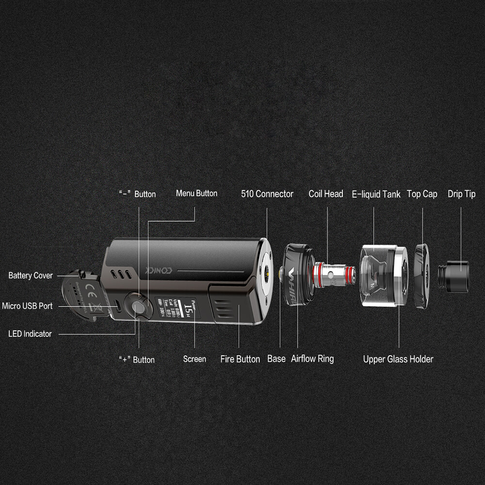 Der Mod besteht aus einer Zink- und Aluminiumlegierung und wird wahlweise durch eine separat erhältliche 18650er, 20700er oder 21700er Akkuzelle betrieben. Die Aufladung erfolgt über das mitgelieferte USB Schnellladekabel. In einem Temperaturbereich zwischen 100°C-315°C, bei einem Widerstand von 0.1 Ohm-3.0 Ohm, kann im VW / TCR oder Mech-Mode gearbeitet werden. Die maximale Ausgansleistung beträgt 100 Watt. Auf dem Display sind alle Parameter hinterlegt.