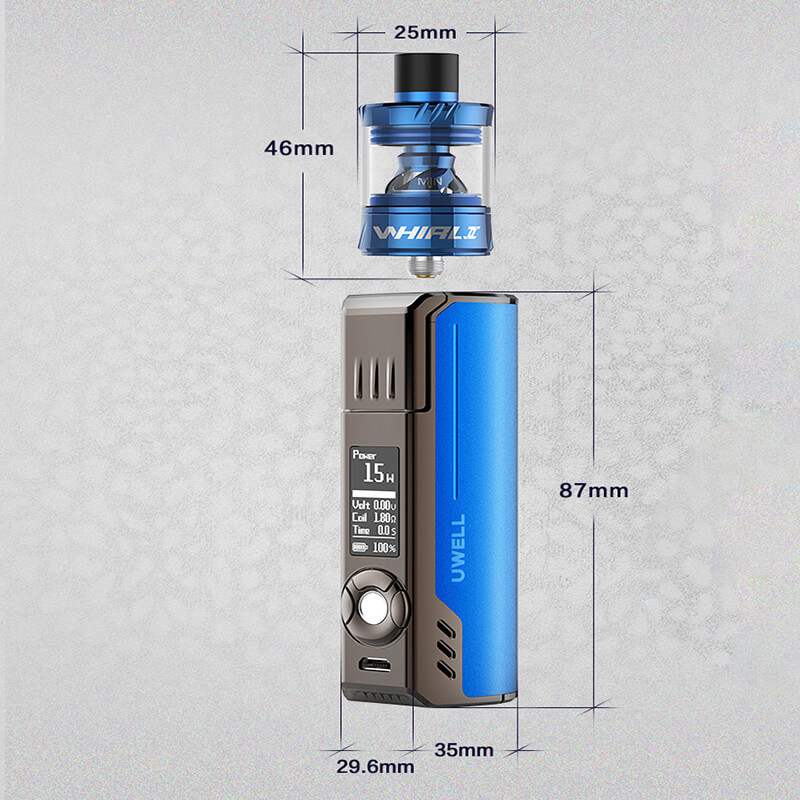 Das Whirl 2 Kit von Uwell erhielt alle gängigen Schutzschaltungen und ist in den Farben Schwarz, Silber, Blau und Rot erhältlich.