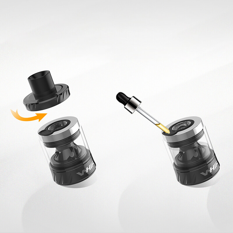 Der Whirl 2 Tank ergänzt den Mod optimal und bringt ein 3.5ml Tankvolumen mit. Das Liquid gelangt über das bequeme Topfill-System in den Verdampfer. Die Whirl Verdampferköpfe (Whirl Coil 0.6 Ohm (18W-22W) / Whirl Coil 1.8 Ohm (10W-15W)) liefern ausgewogene Dampferlebnisse und sind bedienen die Belange der DL-als auch die der MTL Fans gleichermaßen. Die Bottom Airflow kann stufenlos eingestellt werden.