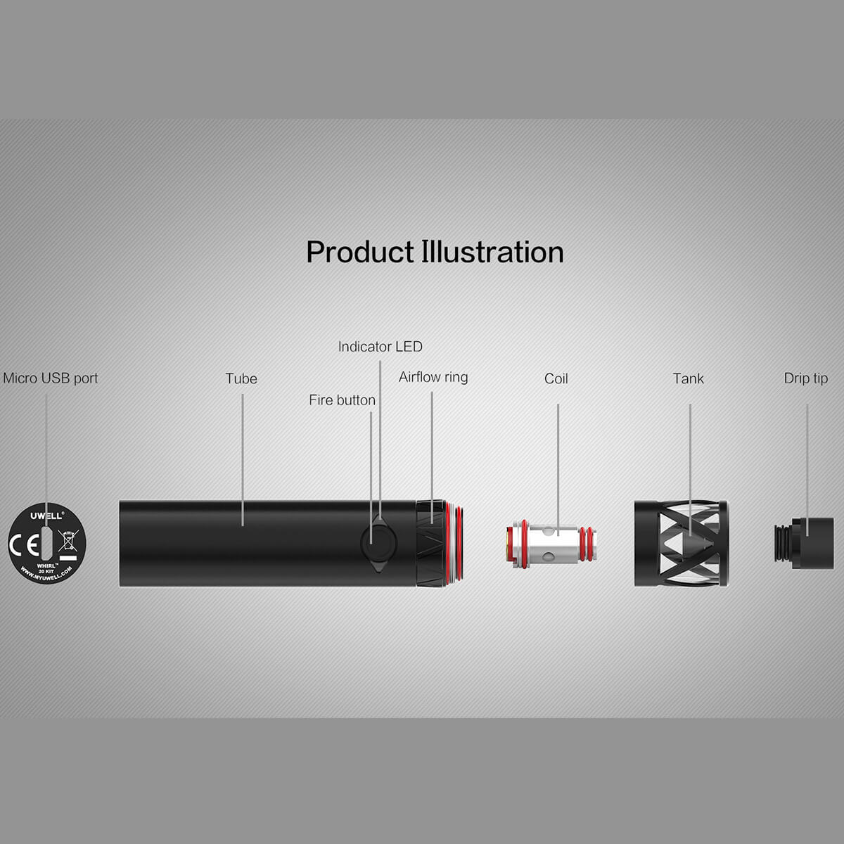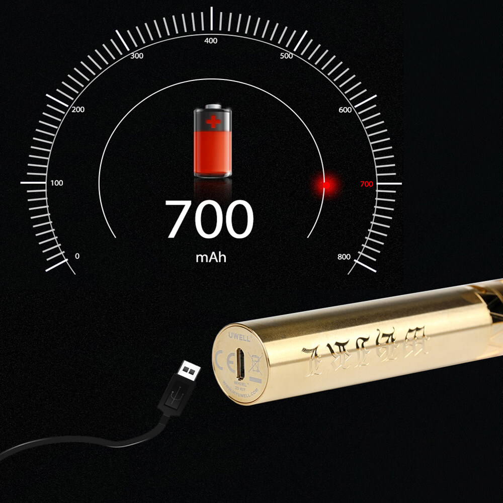 UWELL hat natürlich weder an der Leistung noch an der Performance gespart. Eine verbaute Batterie, mit einer Kapazität von 700mAh treibt den Mod an und kann mit einem Spannungsbereich von 3V – 3.8V maximal 25 Watt Leistung erzielen.