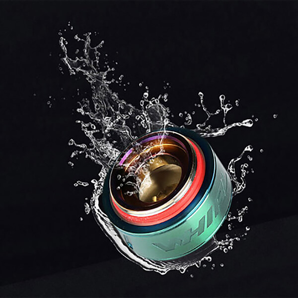 Der gradlinige Aufbau der Edelstahl Konstruktion wurde hochwertig verarbeitet und hat eine Gesamtlänge von 46.3mm und einen Durchmesser von 24.2mm. Der Umgang mit dem Whirl geht problemlos vonstatten.