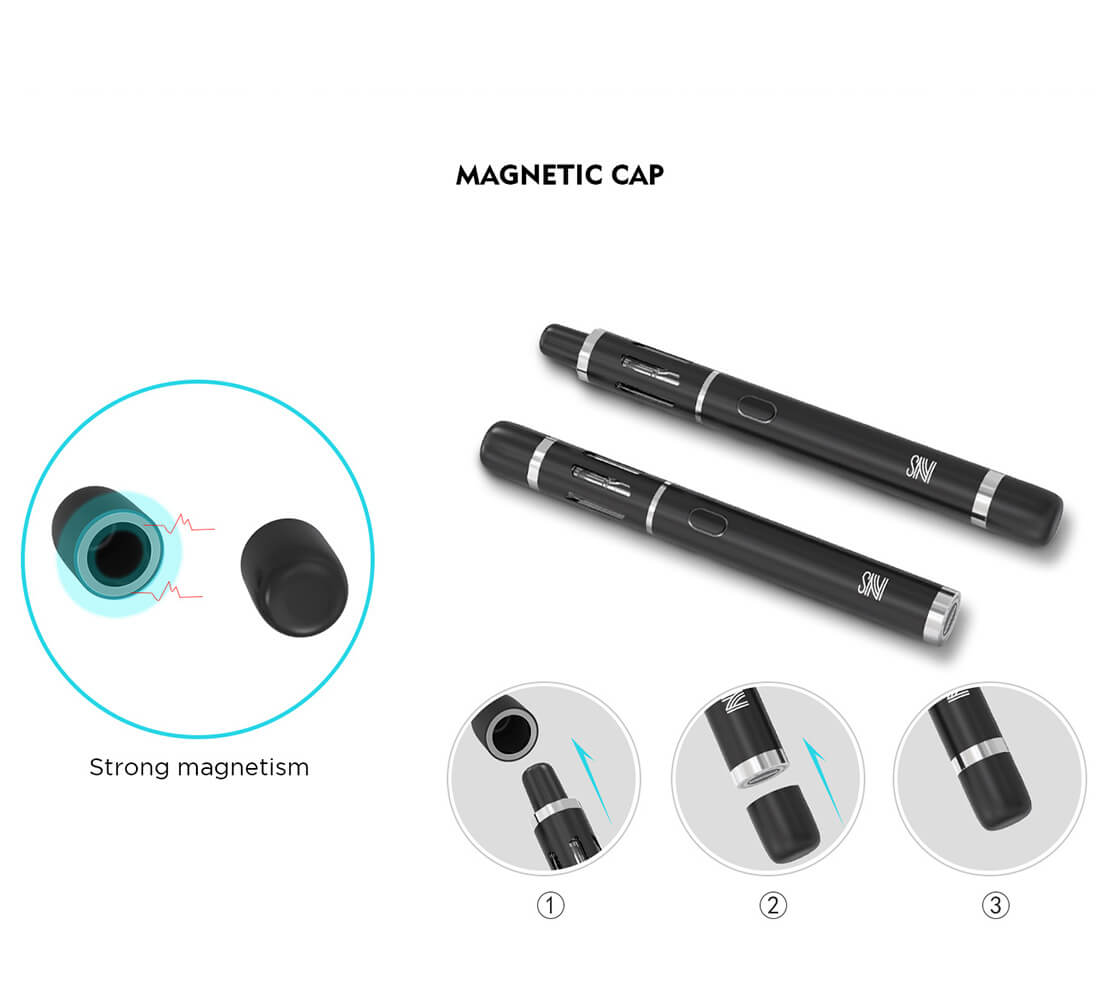 Auch die Sicherheit wurde bedacht und einige Schutzfunktionen installiert. Eine kleine Kappe gehört mit zum Set und ist dafür gedacht, dass das Mundstück nicht durch Staub oder ähnlichem so schnell verunreinigt werden kann. Ein starker Magnet hält die Kappe fest am Pen. Ist das Gerät im Gebrauch besteht die Möglichkeit, die Abdeckung an das untere Ende magnetisch zu befestigen, möchte man den Deckel, während des Nutzung , nicht in der Hand halten.