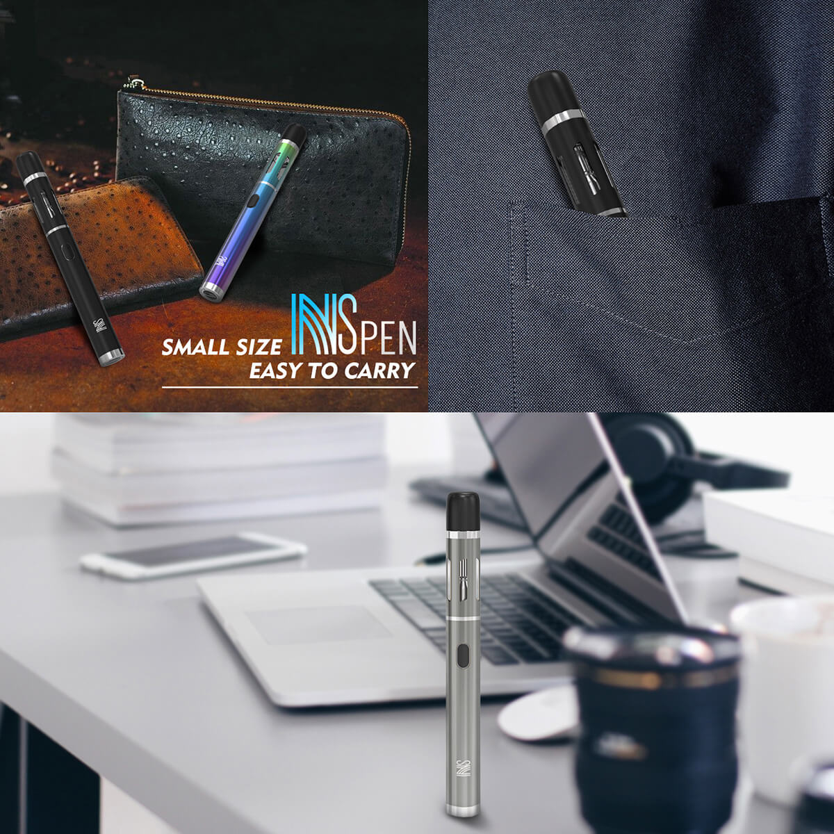 Der NS Pen hat einen schmalen Körper, geformt wie ein Stift und ist genau so leicht in jede Tasche verstaubar. Die Auswahl der möglichen Farben ist in schlichten, dezent matten Tönen gehalten.