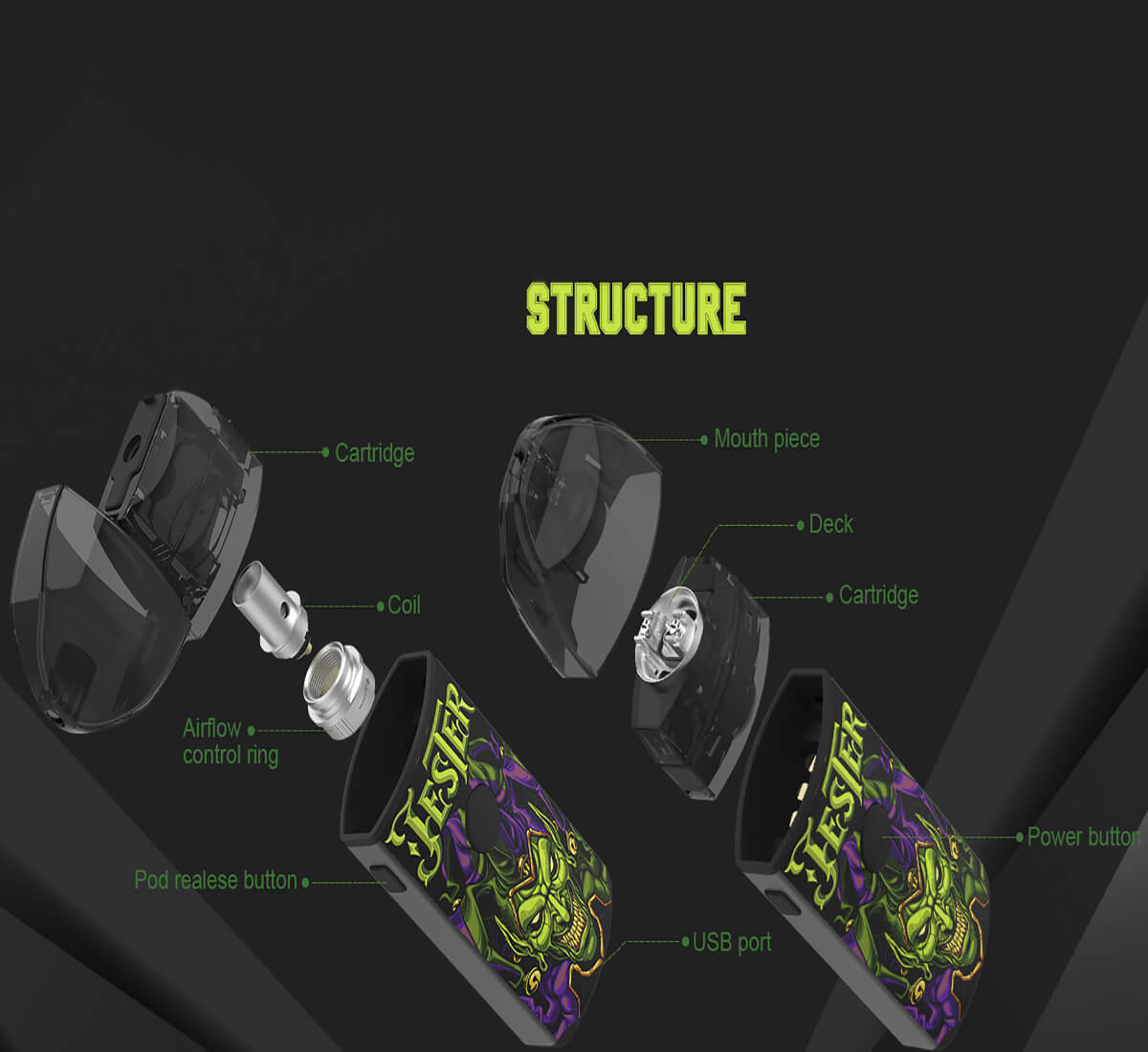 Mit Vapeflys Jester Pod Kit erhält man ein stylisches MTL-Gerät, welches sich bestens für den Alltag eignet.