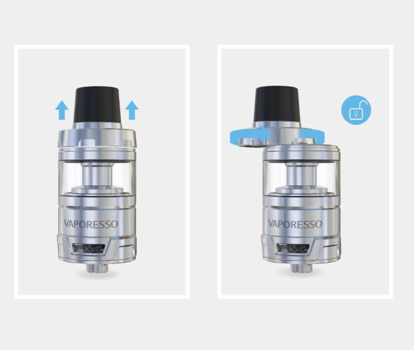 Mit den Maßen 51.5mm (h) x 22mm Durchmesser ist er der bislang kleinste der Serie und verfügt über ein 3.5ml Volumen, dass es durch das Topfilling zu Befüllen gilt.