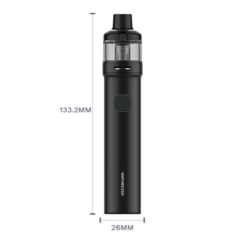 Vaporessos GTX Go 80 Kit wurde im handlichen Tubestyle designt, misst 133.2mm x 26mm und ist in Schwarz und Matt-Grau erhältlich.