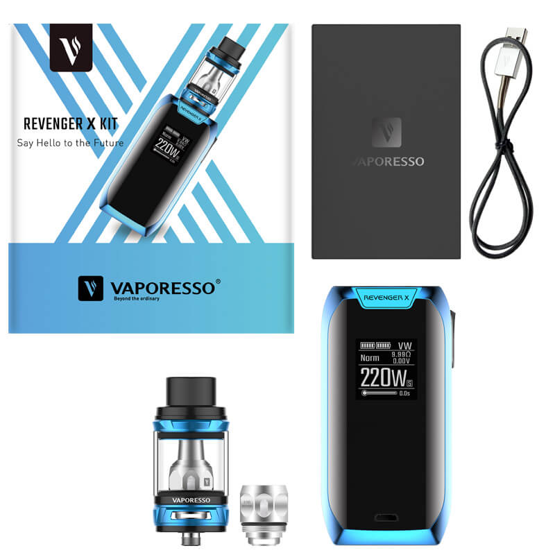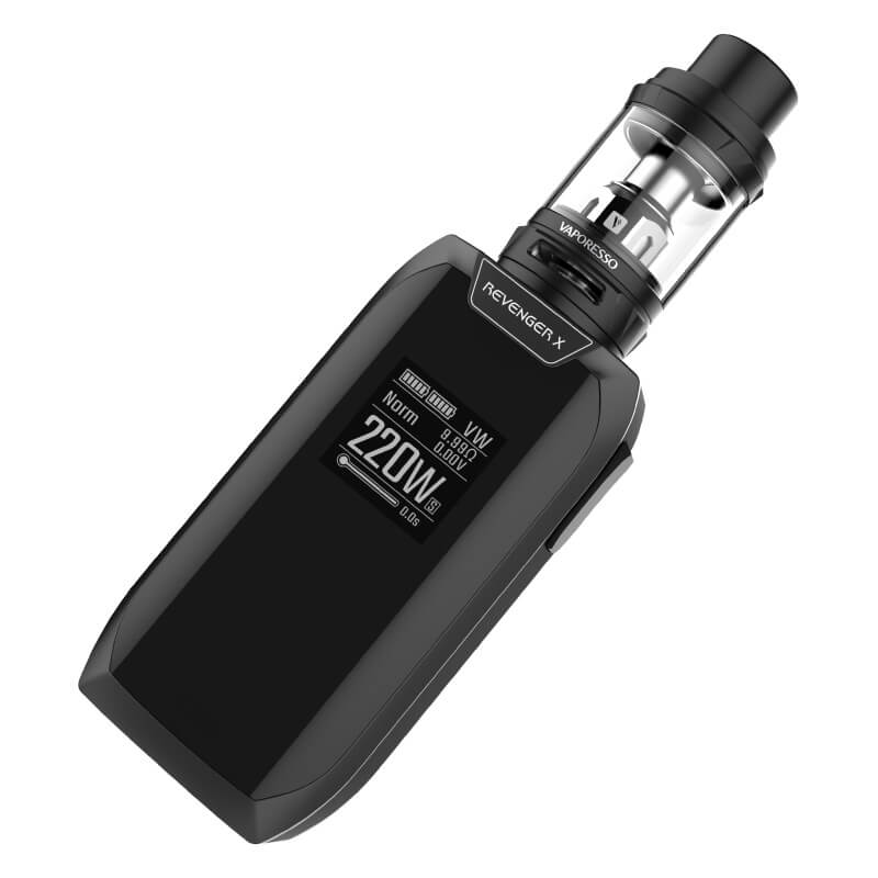 Das Revenger X Kit von Vaporesso ist nicht nur optisch ein wahres Highlight, es besitzt eine besonders robuste Beschichtung, welche das Kit vor Kratzern und Lackschäden schützt. Die ergonomische Form mit den abgerundeten Kanten gibt ein angenehmes Tragegefühl in der Hand. Bedient wird die X-Variante nicht mehr über die Tasten, sondern über ein Touchdisplay.