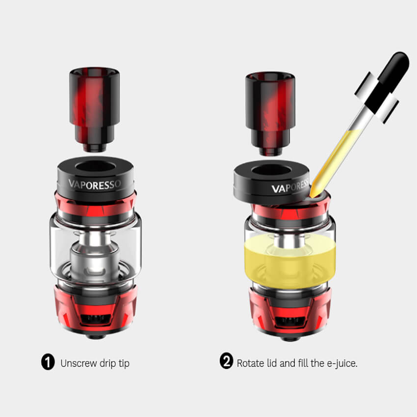 Sein beachtliches Füllvolumen beträgt satte 8ml. Ständiges Nachfüllen entfällt. Durch das schnelle und sehr bequeme Topfill-System wird das Liquid in den Tank gegeben. Auch an eine Kindersicherung wurde gedacht.