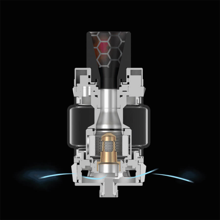 Die perfekte Entfaltung von Geschmack und Dampf unterstüzt die Bottom Airflow, die am Boden positioniert wurde und verstellbar ist. Außerdem hält sie die Temperatur angenehm kühl.