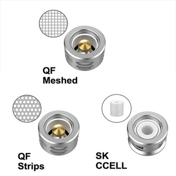 Sämtliche Verdampferköpfe der GT-Reihe können beim SKRR-S genutzt werden, sowie die neuen Coils GT Mesh (0.18 Ohm) und QF Strip (0.15 Ohm). Diese enorme Auswahl bietet für alle Vorlieben den richtigen Verdampferkopf.