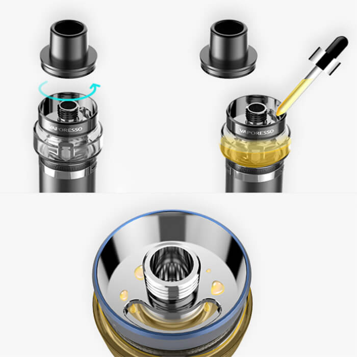 Für ein ausgezeichnetes Aroma und prächtige Dampfbildung sorgen die Verdampferköpfe der GT-Reihe (0.15 Ohm - 0.5 Ohm), wodurch das AIO-Gerät sehr vielzeitig einsetzbar ist. Auch die Bottom Airflow unterstützt die Entfaltung von Geschmack und Dampf.