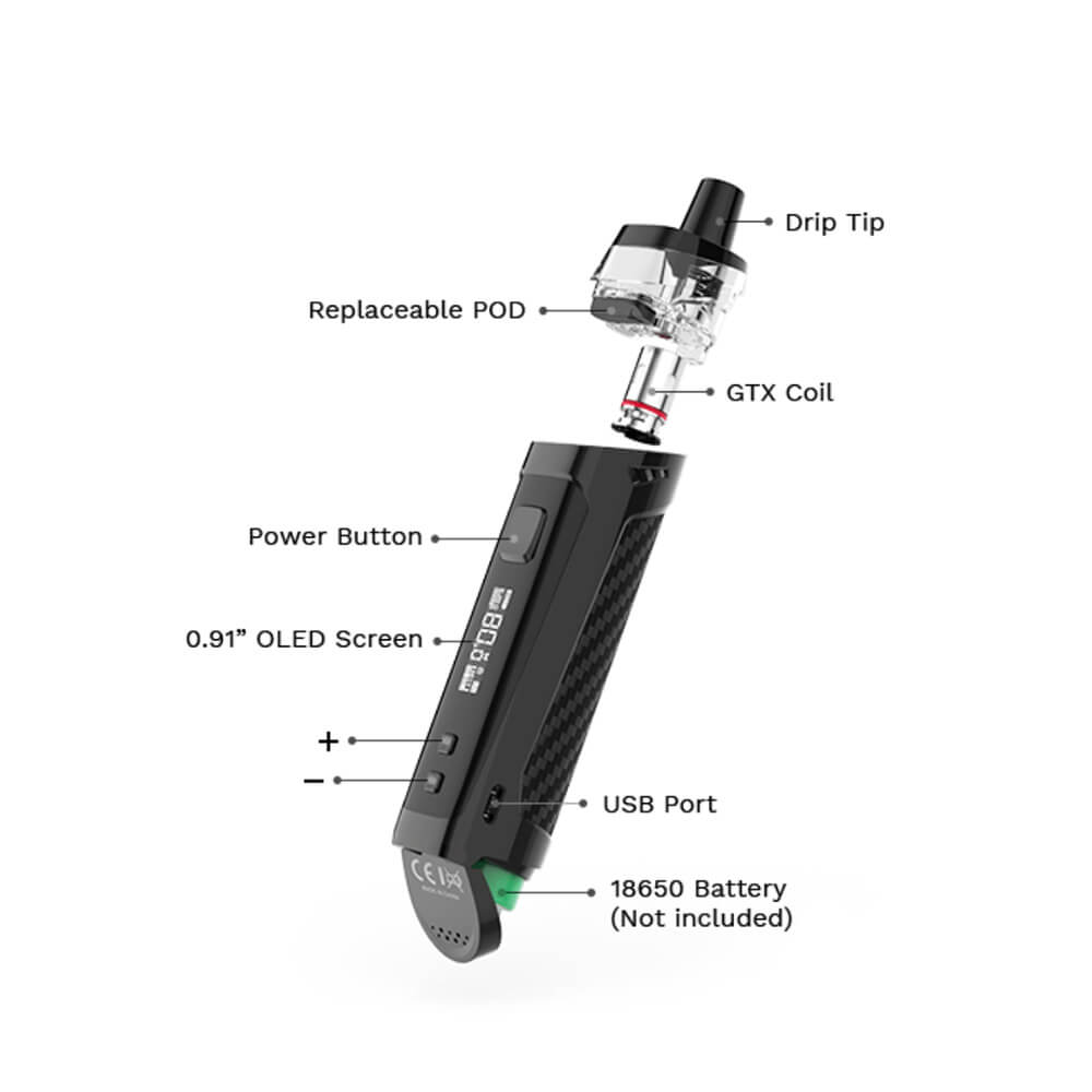 Vaporessos Target MP80 SE Kit erweitert die beliebte Target Familie und behält sämtliche Vorzüge des Vorgängers bei, wird nun aber anstatt mit einem verbauten Akku mit einer wechselbaren 18650er Batterie betrieben (nicht Bestandteil der Lieferung). Dank des beiliegenden 2A Micro-USB Kabels ist die verbrauchte Kapazität zügig wieder geladen.
