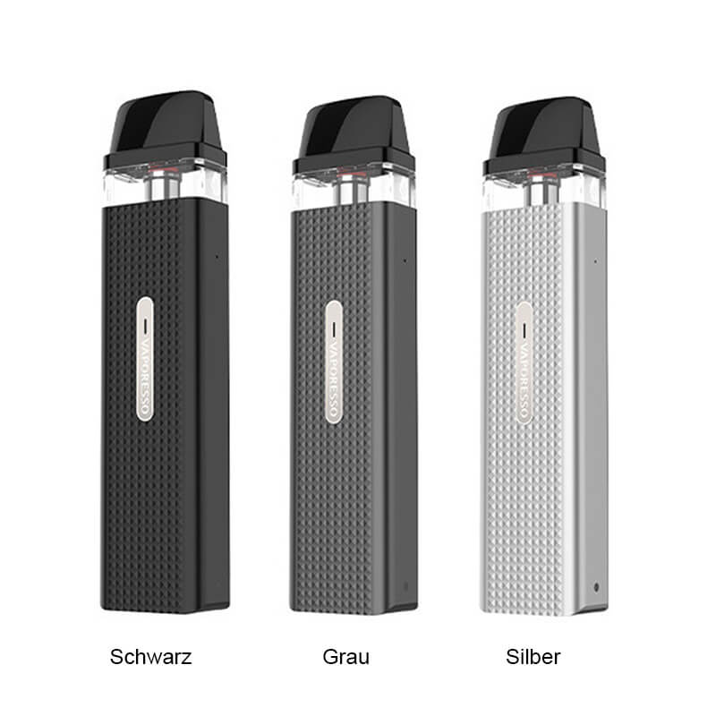 Das handliche (98.9mm x 23.4mm x 13.5mm) XROS Mini Kit von Vaporesso eignet sich insbesondere für Neueinsteiger und ist in Schwarz, Silber und Grau zu haben.