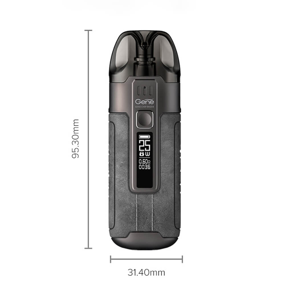 VOOPOOs Argus Air Kit in Hosentaschengröße (95.3mm x 31.4mm x 19,3mm) ist ein sehr ansehnliches und gelungenes Kit und in Schwarz / Grau und Carbon Fiber erhältlich.