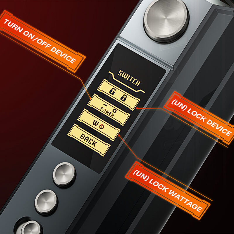 Das 0.96-Zoll-TFT-Farbdisplay liefert alle wichtigen Informationen in Echtzeit und ermöglicht eine benutzerfreundliche Bedienung. Die Auswahl der verschiedenen Dampfmodi, sowie die Anpassung der Display-Helligkeit erfolgen bequem über den ergonomisch-runden Feuertaster und den Auswahltasten (+/-).