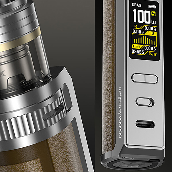 Optisch passt sich VOOPOOs Drag X Pro Kit seinen Vorgängern an und hält dem beliebten Design die Treue. Das moderne Set besteht aus einer Legierung, sowie Leder und Edelstahl und ist in sieben zeitlosen Farben erhältlich.
