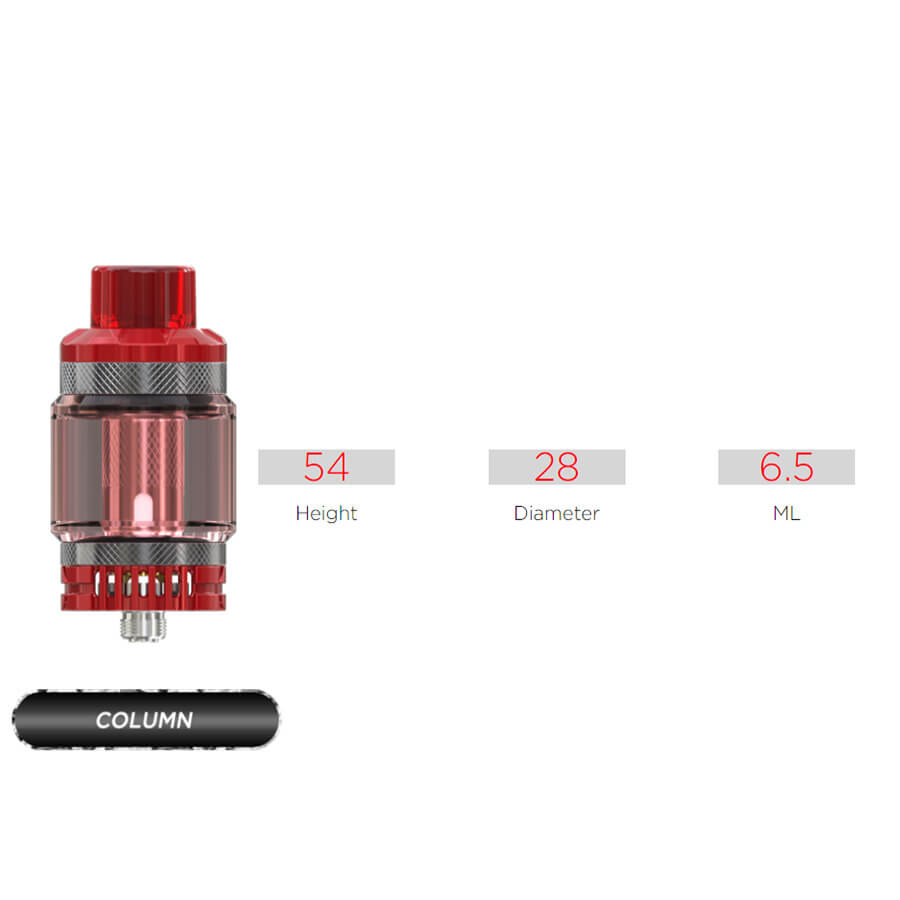 Wismecs COLUMN ist sowohl visuell als auch in puncto Technik ein Genuss und kann mit dem 510er Anschluss auf zahlreiche Akkuträger montiert werden.