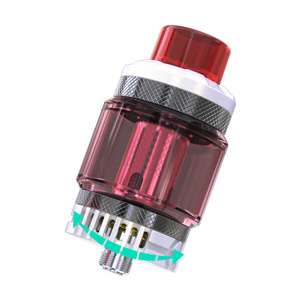 Die Bottom Airflow kann nach Wunsch kontrolliert und geregelt werden und unterstützt mit der Zirkulation die Entstehung von Geschmack und Dampf.