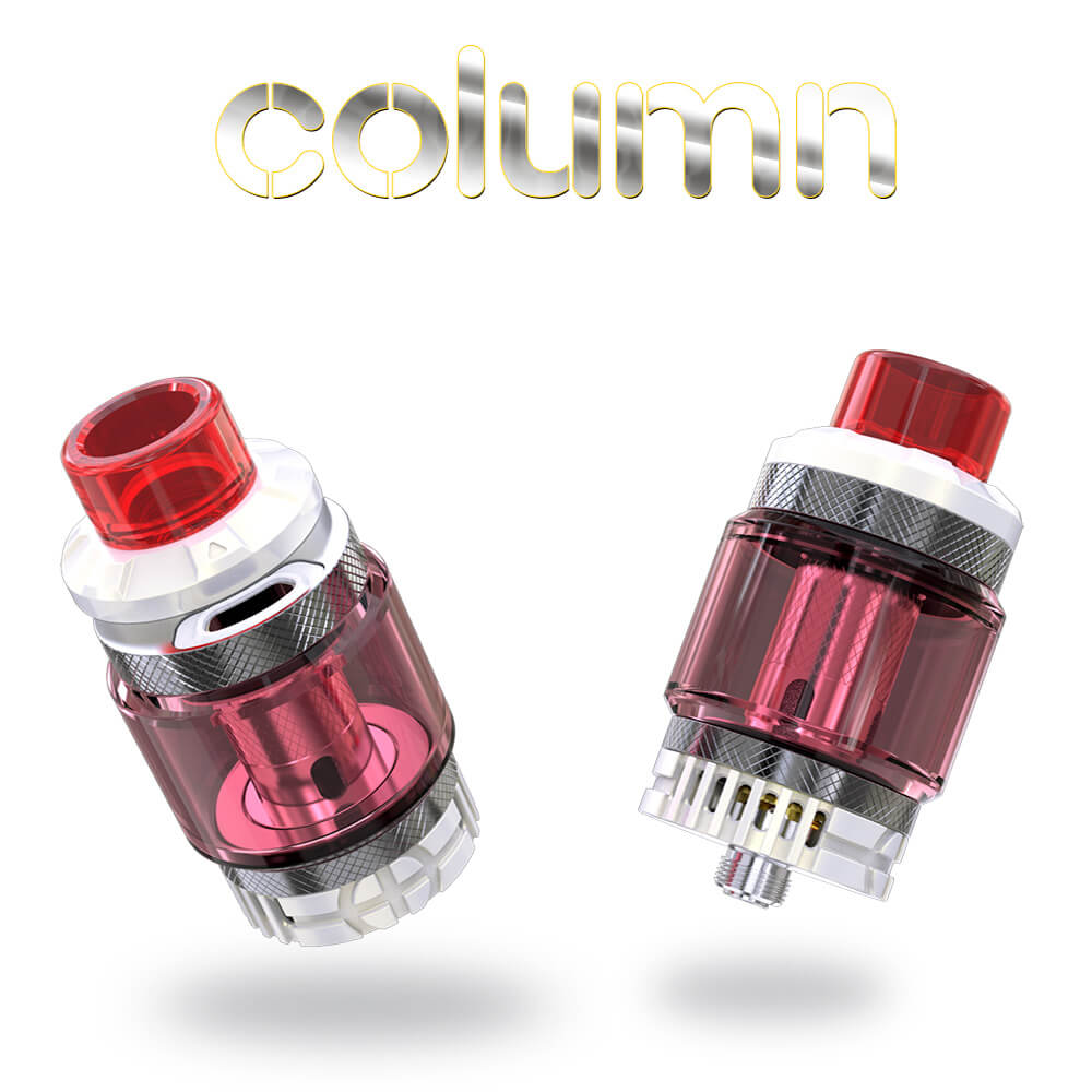Der neue COLUMN Verdampfer stammt aus den Werkstätten Wismecs und fällt durch seine farblichen Glass-Tubes sofort ins Auge.