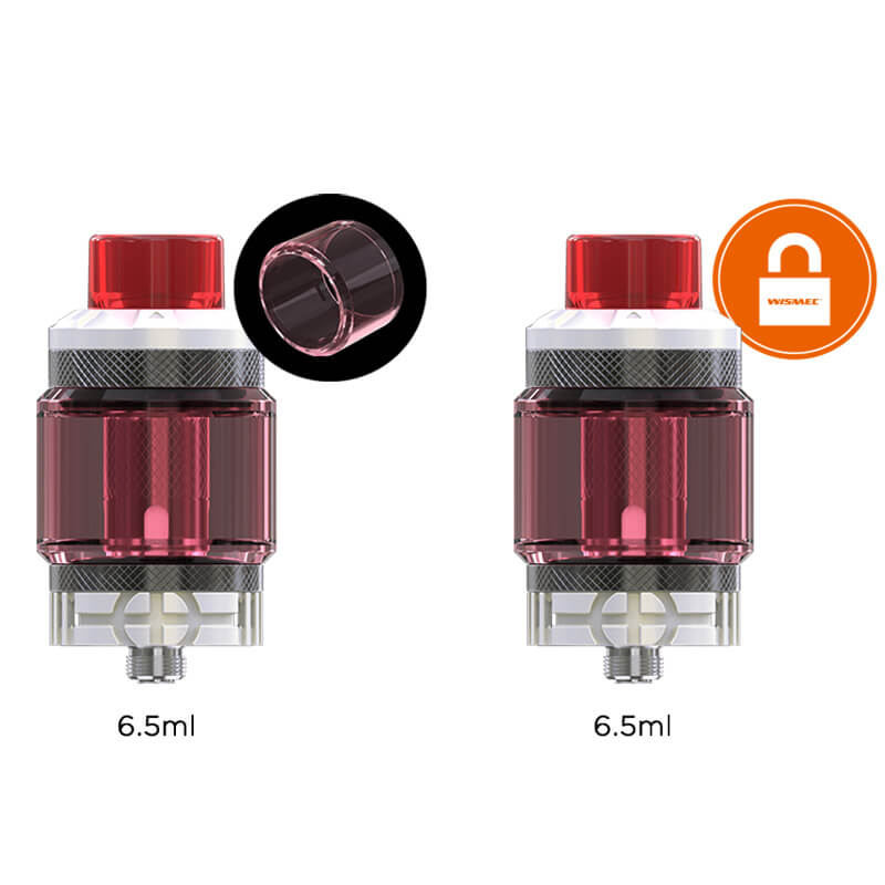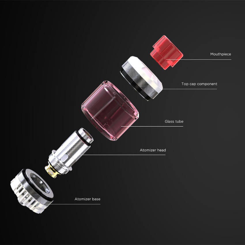 Der Verdampfer hat einen Durchmesser von 28mm, bei einer Größe von 54mm. Zusätzlich ist er für eine optimale Reinigung komplett auseinanderbaubar und in Weiß, Blau und Rot erhältlich.