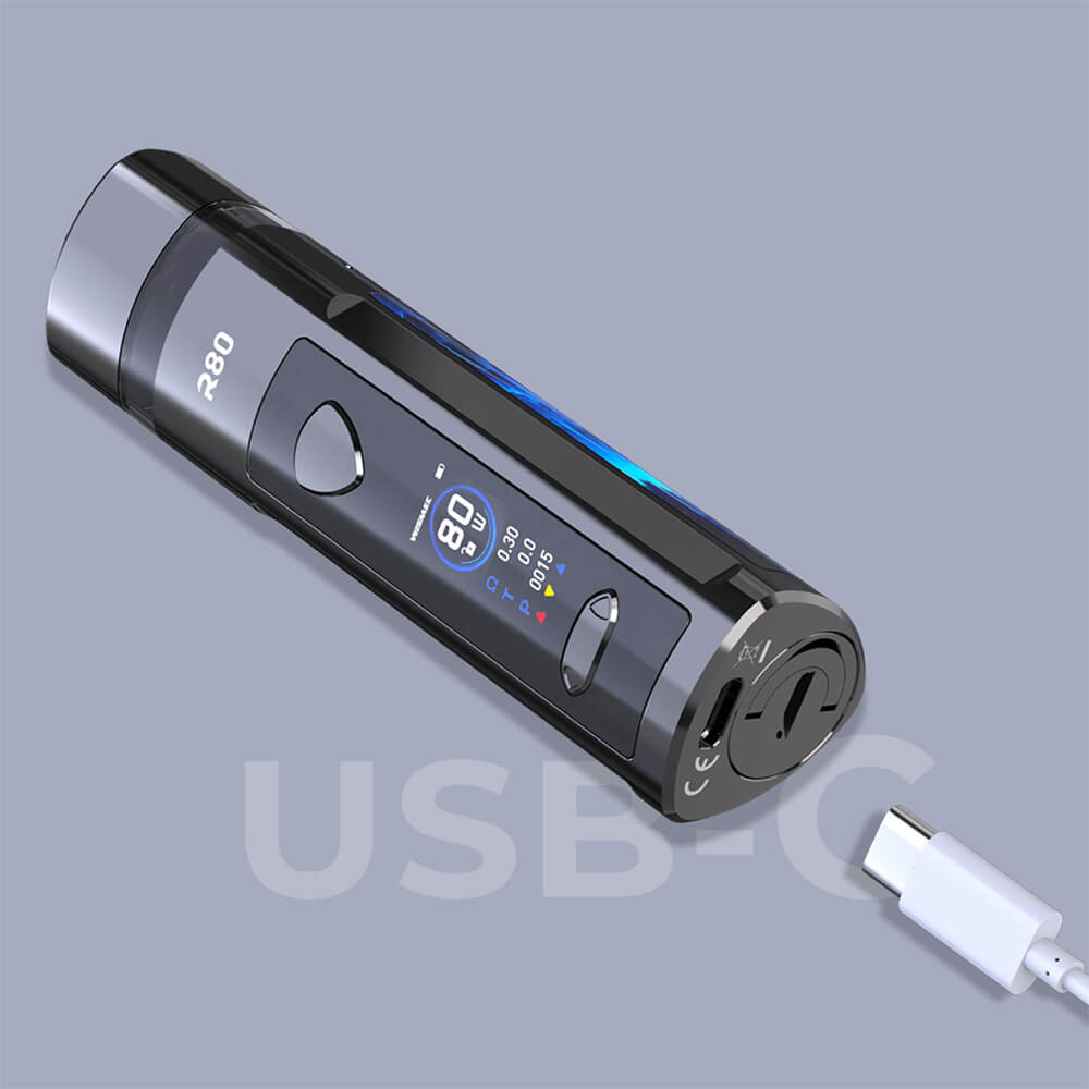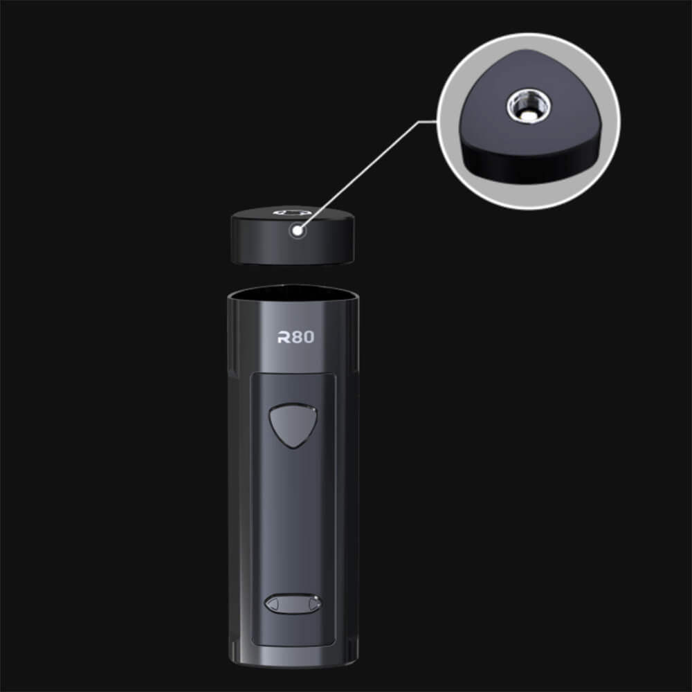 Die kompakten Maße (116.2mm x 32mm x 31.5mm / 111g) machen das R80 Kit von Wismec schön handlich und verstaubar. In der schwarzen Version ist es erhältlich.