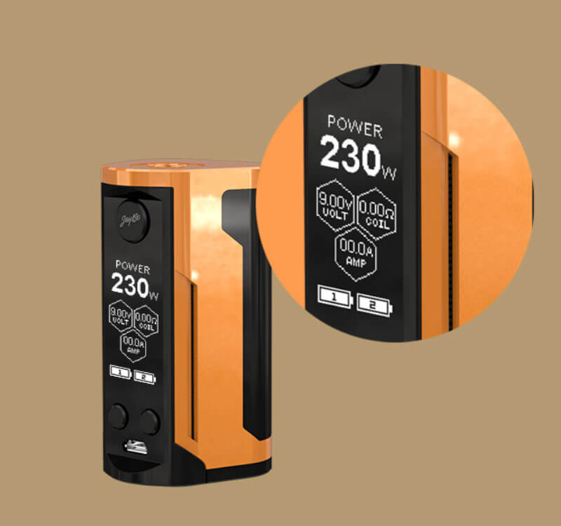 Der Reuleaux RX GEN3 Dual Mod verfügt über einen kraftvollen Chip, der eine Ausgangsleistung von bis zu 230 Watt spielend leicht erreichen kann. Dabei wird im VW / TC-Ni / TC-Ti / TC-SS / TCR gearbeitet. Mittels des 1.3 Zoll großen Bildschirms können alle aktuellen Werte klar abgelesen werden. Die Navigation durch das Menü ist selbsterklärend und gestaltet sich äußerst einfach. Für die Inbetriebnahme ist ein zusätzlicher Kauf zweier 18650er Zellen notwendig. Diese werden über den integrierten USB – Port wieder aufgeladen, über dem der Mod auch stets upgegradet werden kann. Natürlich wurde auch an die Sicherheit gedacht und diverser Schutz installiert.