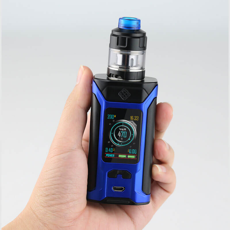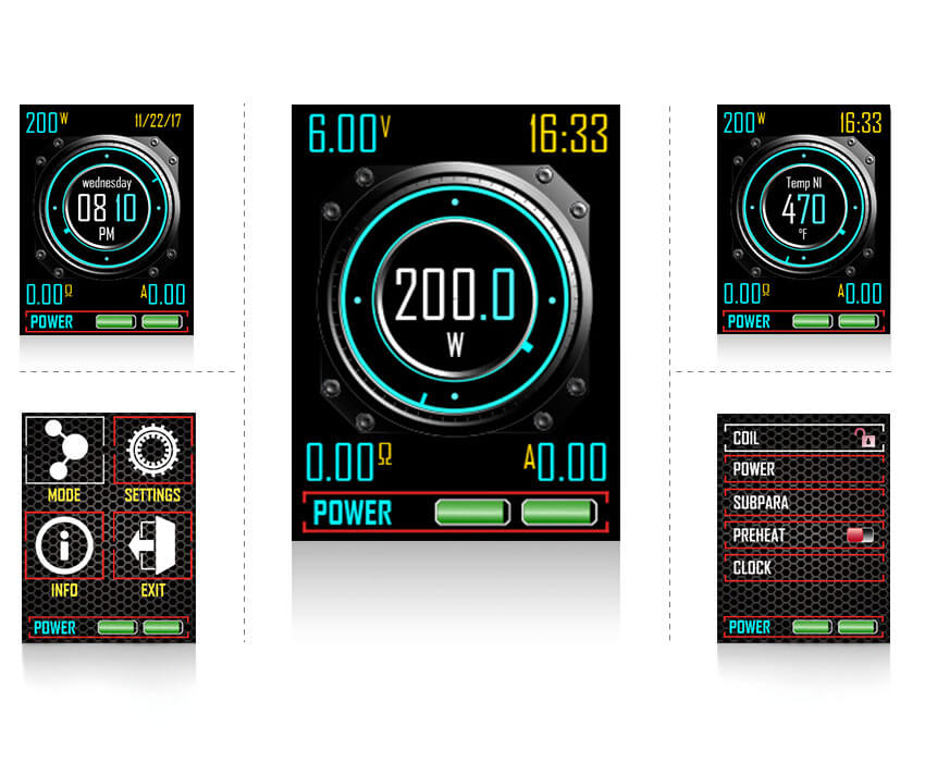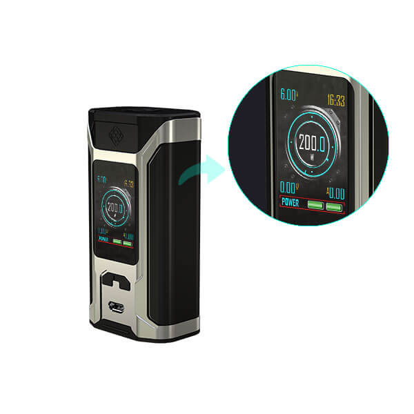 Das Augenmerk bei dem Sinuous RAVAGE230 Mod richtet sich vor allem auf den kraftvollen Chipsatz, mit seiner beträchtlichen Ausgangsleistung von bis zu 230W. Wie gewohnt wird dabei im VW / TC – Ni / TC – Ti / TC – SS / TCR – Modus gearbeitet. Alle relevanten Parameter findet man gut ablesbar auf dem großen 1.45 Zoll Display. Das Menü ist übersichtlich und strukturiert, wobei die Navigation bequem und einfach gehalten ist. 2x 18650er Akkus müssen zusätzlich gekauft werden, damit der Mod den Betrieb aufnehmen kann.