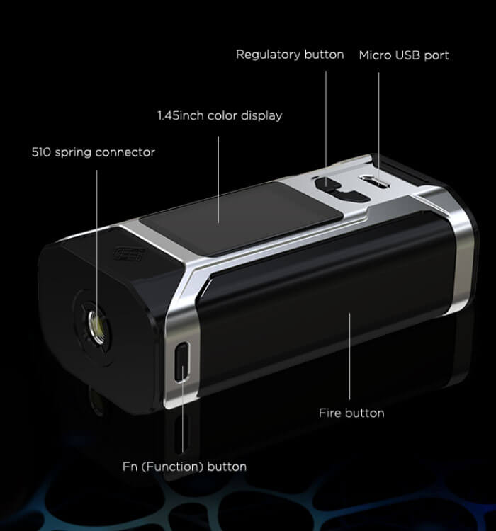 Mit einem Zusatzkauf zweier 18650er Akkus bringt man den Mod zum Laufen, wobei Dank des neuen Chipsatzes, bis zu 230 Watt Leistung / 100°C – 315°C erzielt werden kann.