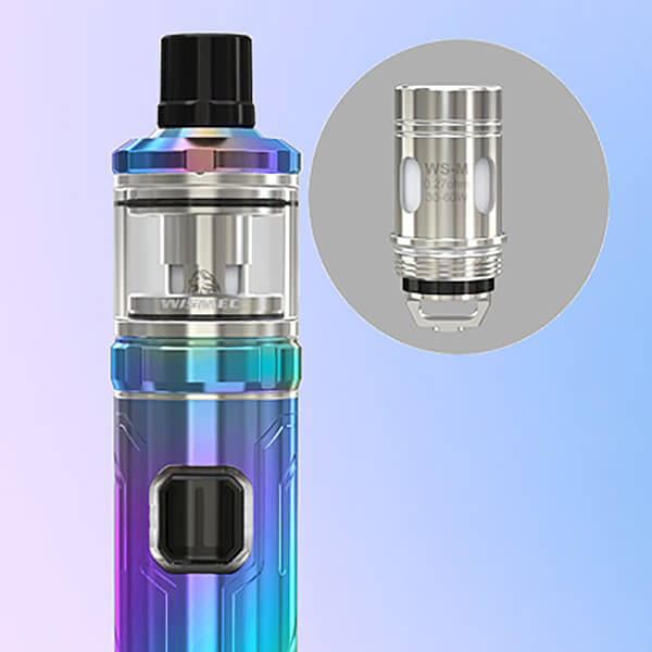 Vervollständigt wird dieses Kit mit dem Amor NS Pro, der ein von oben zu betankendes Füllvolumen von 2ml mitbringt. Backendampfer (MTL) und DL-Fans kommen, Dank der Nutzung der WS-Köpfe, gleichermaßen auf ihre Kosten. Die komplette Reihe der WS Coils kann verwendet werden. Deren Widerstand reicht von 0.2Ohm – 1.5Ohm (7W – 120W). Die Bottom Airflow regelt den Luftstrom und zirkuliert optimal, um beste Dampf-Ergebnisse zu erzielen.