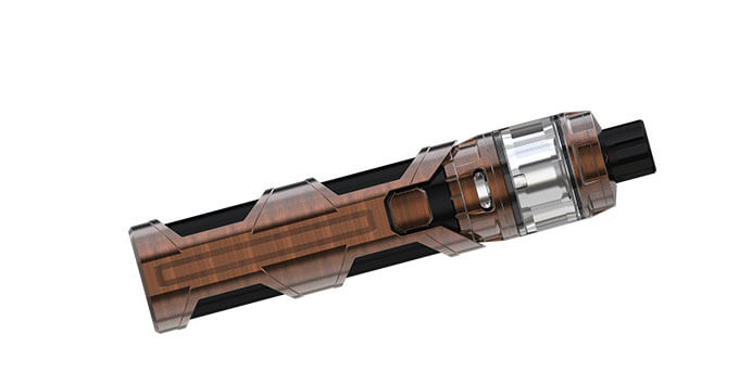 Das Design ist angelehnt an die Optik eines Schwertgriffs und erfreut jeden Bastler durch die Möglichkeit, dass die Dekoblende kinderleicht ausgetauscht werden kann. Dazu wird der Rahmen ab-und wieder aufgeschraubt. Das Leichtgewicht bringt es auf 50W und hat eine Akkukapazität von 3000mAh (integriert). Der Mod ist hochwertig, solide und weist diverse technische Features auf.