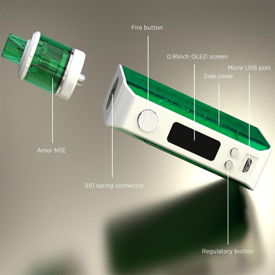 Clever kombiniert wird der Mod mit dem Amor NSE, der ein Tankvolumen von 3ml mitbringt, welches durch das Topfilling befüllt wird. Mit der Bottom Airflow wird der Luftstrom nach Wunsch eingestellt. Das Einsetzten der WS-Coils geht problemlos vonstatten, zudem sind sie in verschiedenen Ausführungen erhältlich, was sie sehr facettenreich macht und alle Nutzer auf ihre Kosten kommen.