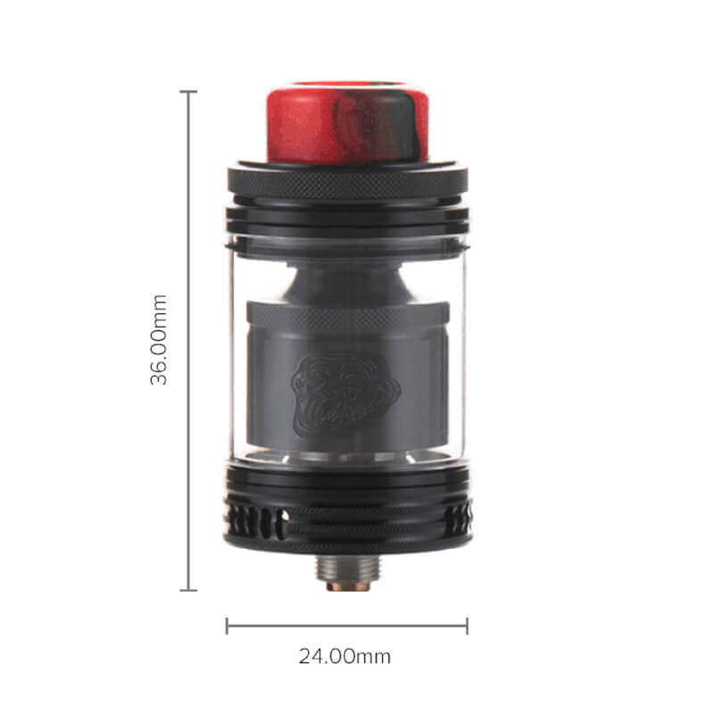 Der Troll X RTA ist ein Selbswickelverdampfer mit einem 24mm Durchmesser und einer 36mm Länge. Die ersklassige Verarbeitung ist bei Wotofo Standard, so dass auch dieser Verdampfer sehr wertig ist und aus bestem Edelstahl und Pyrex besteht.